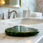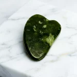 Esculpida em quartzo verde, a gua sha é ideal para integrar rituais de cuidado facial que valorizam o toque consciente.